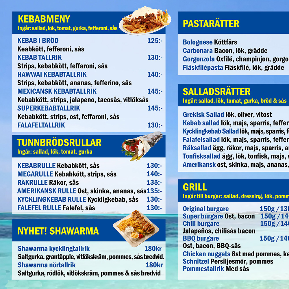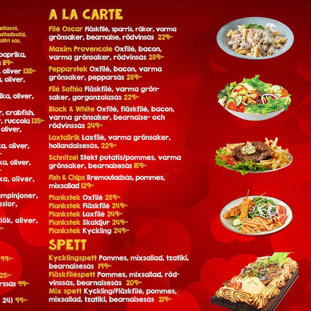 Presentera din meny med text, bilder eller animationer. Digital skyltning ger dig full flexibilitet att visa menyer på ett modernt och attraktivt sätt.